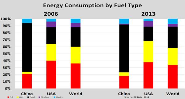 With economic expansion in China comes an increase in everything but particularly the demand for energy. In a slower 2013, BP Datashows energy demand only grew 4.4% and took China to 23% of total global energy consumption and 25% higher than the US.